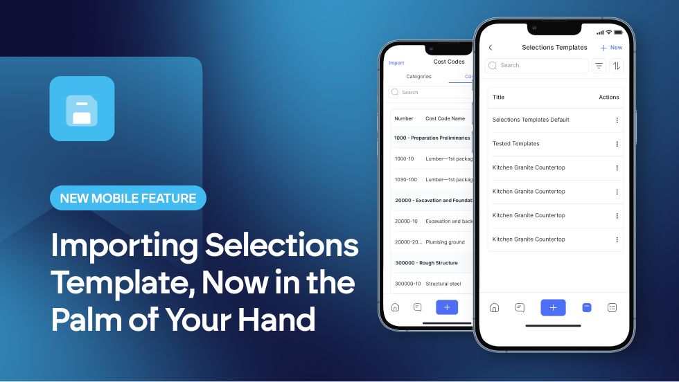 This saves you from having to manually enter items on your phone and gets new jobs set up much faster Go to a project's Selections, tap "Import," and choose your template to instantly populate your list while ensuring consistency and accuracy.