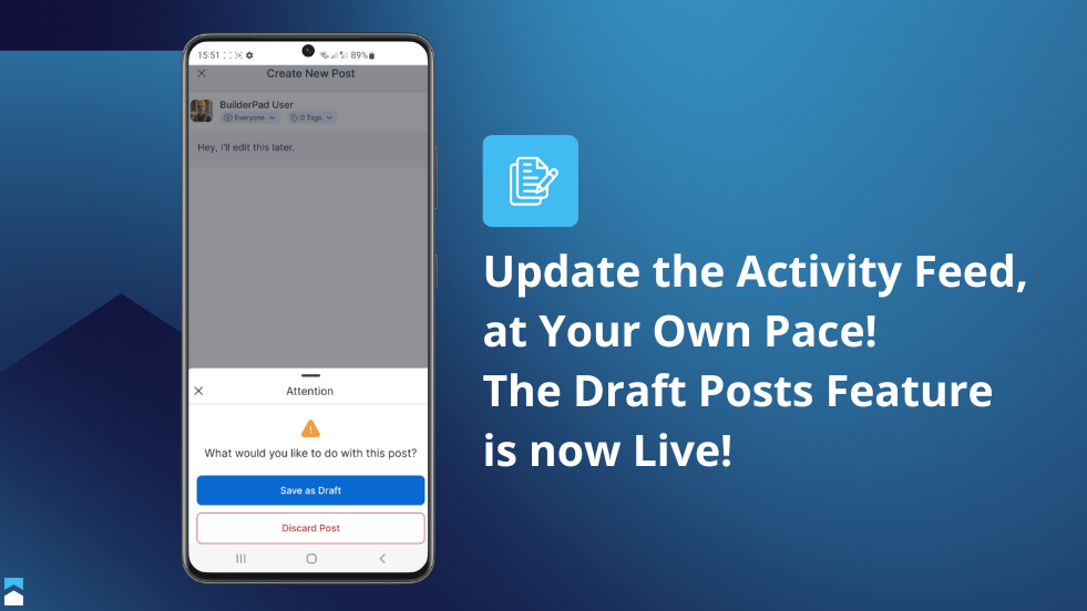 • Seamless Sync Across Devices: Your creativity shouldn't be tied to one device. Your drafts automatically sync between BuilderPad on your web browser and your mobile app. Start a post on your desktop and finish it on your phone while on-site, or vice-versa!